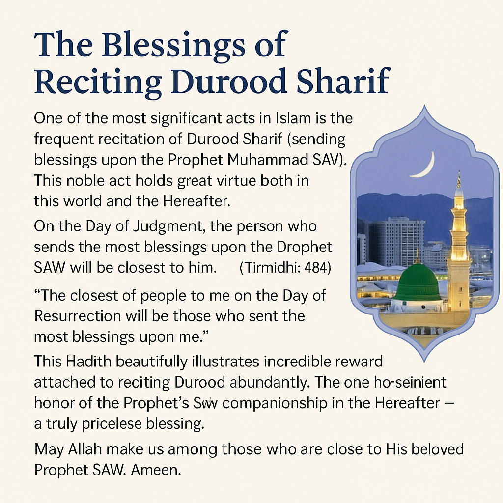 Let us all make it a habit to recite Durood Sharif frequently and reap the immense benefits that come with it — both spiritual and eternal.